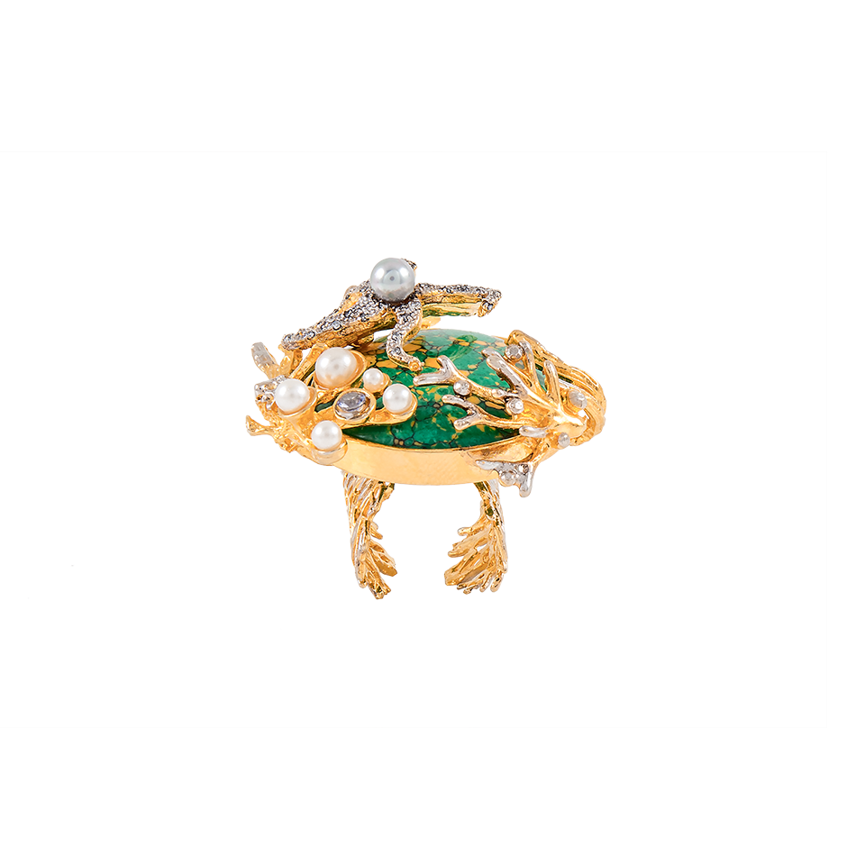 Gold-plated brass ring with rhodium touches, adorned with a stunning feroza stone.